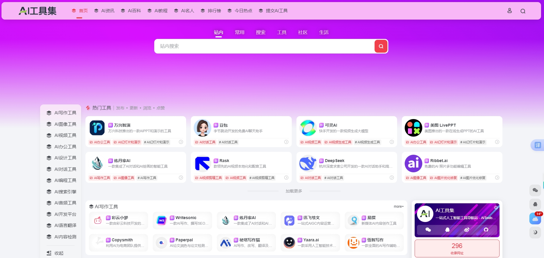 已收录1000+写作、绘图、剪辑类AI工具,一站式查找更高效!
